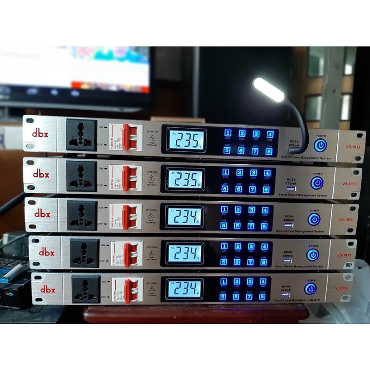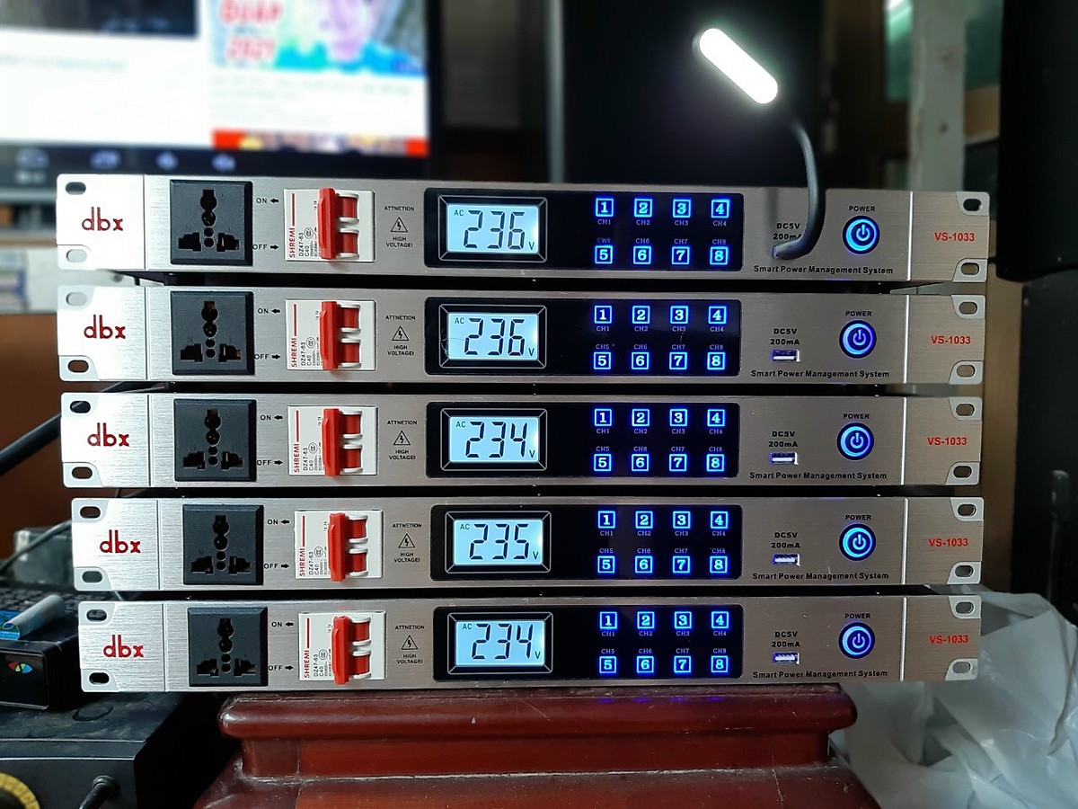 Bộ chia nguồn điện 9 cổng DBX VS1033 là thiết bị quản lý nguồn điện cho toàn bộ hệ thống âm thanh của phòng karaoke.