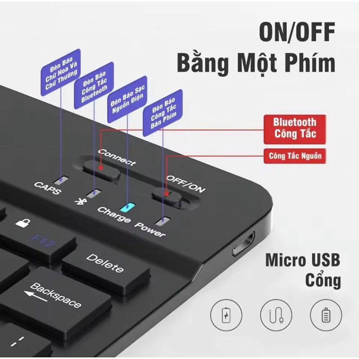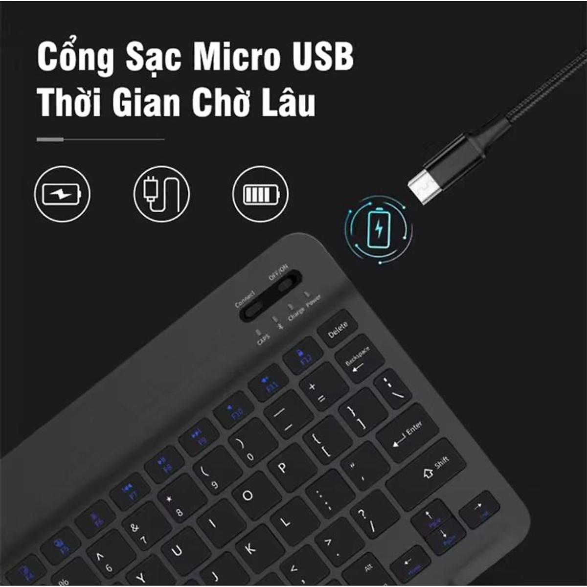 Combo bàn phím và chuột bluetooth không dây sạc type C mini 10 inch cho điện thoại - hàng nhập khẩu