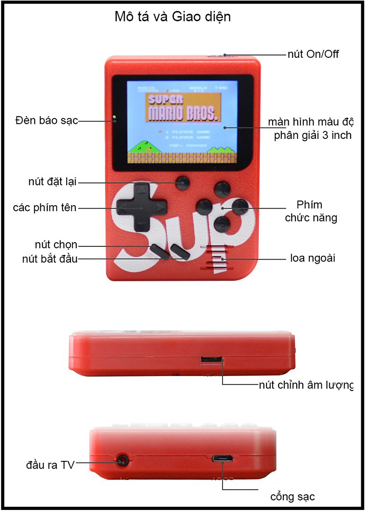 Máy chơi game cầm tay 4 nút Sup hơn 400 trò, tuỳ chọn thêm tay cầm, kết nối với TVÔn lại tuổi thơ với chiếc máy chơi game điện tử 4 nút ngày xưa đã để lại rất nhiều kỉ niệm trong lòng mỗi người thời ...