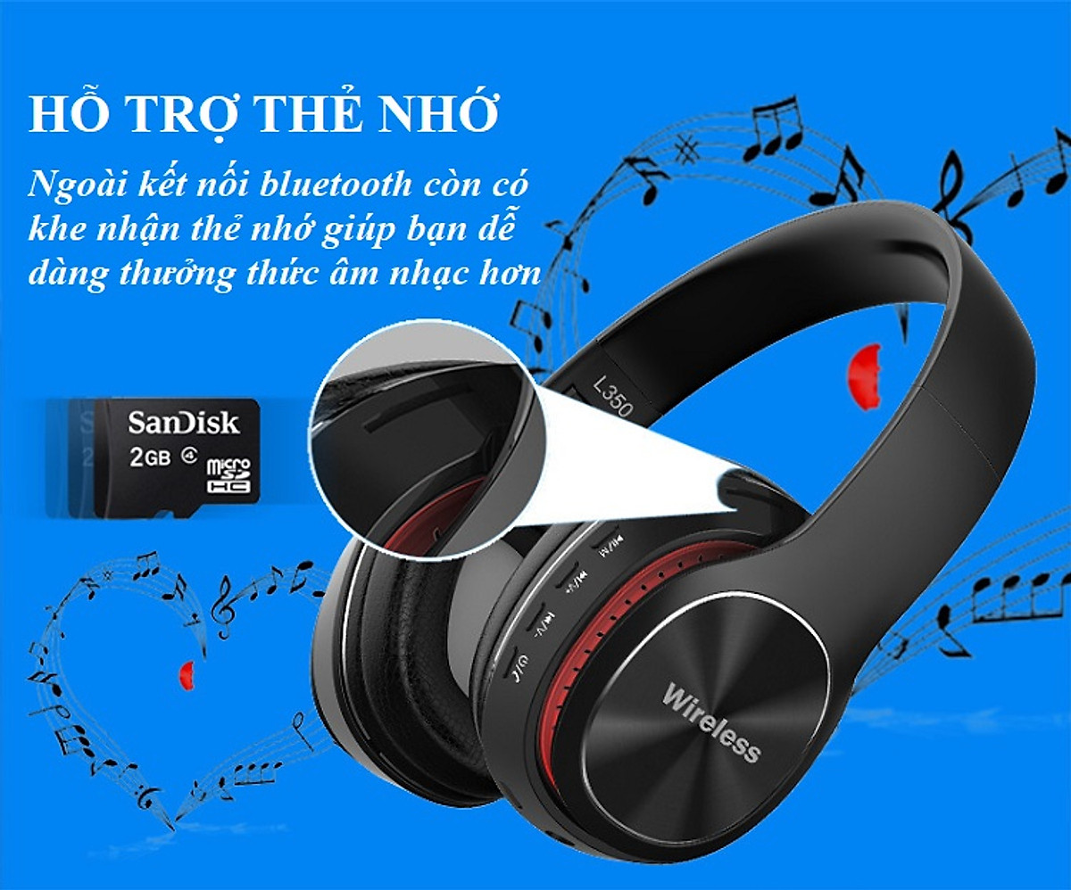 Tai Nghe Không Dây HUQU HQ350 - Hỗ Trợ Nghe Có Dây, Nghe Thẻ nhớ